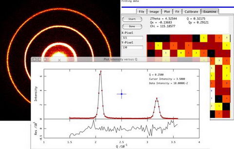 測資料分析,特別適合於分析粉狀衍射資料,聚合體或液晶散射,膠體、聚合體、